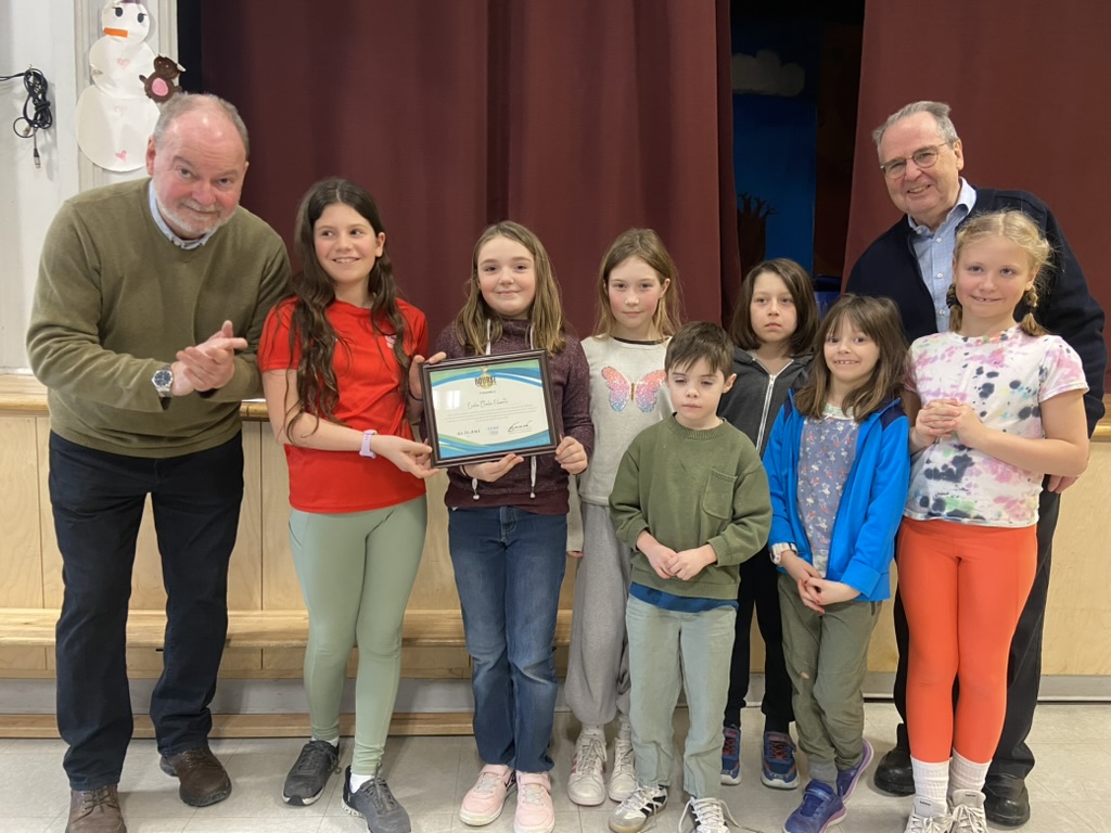 Nous sommes allés remettre la bourse Michel Séguin 2025 aux élèves de l’école primaire Étoile filante à Montréal. C’est dans la joie et dans une atmosphère de fête que nous avons pu féliciter les quelque 130 élèves de l’école pour leur engagement envers la réduction à la source. La bourse de 1000$ a été remise aux sept ambassadeurs de la réduction, des élèves choisis pour présenter les différents projets ayant mené à la sélection de l’école.